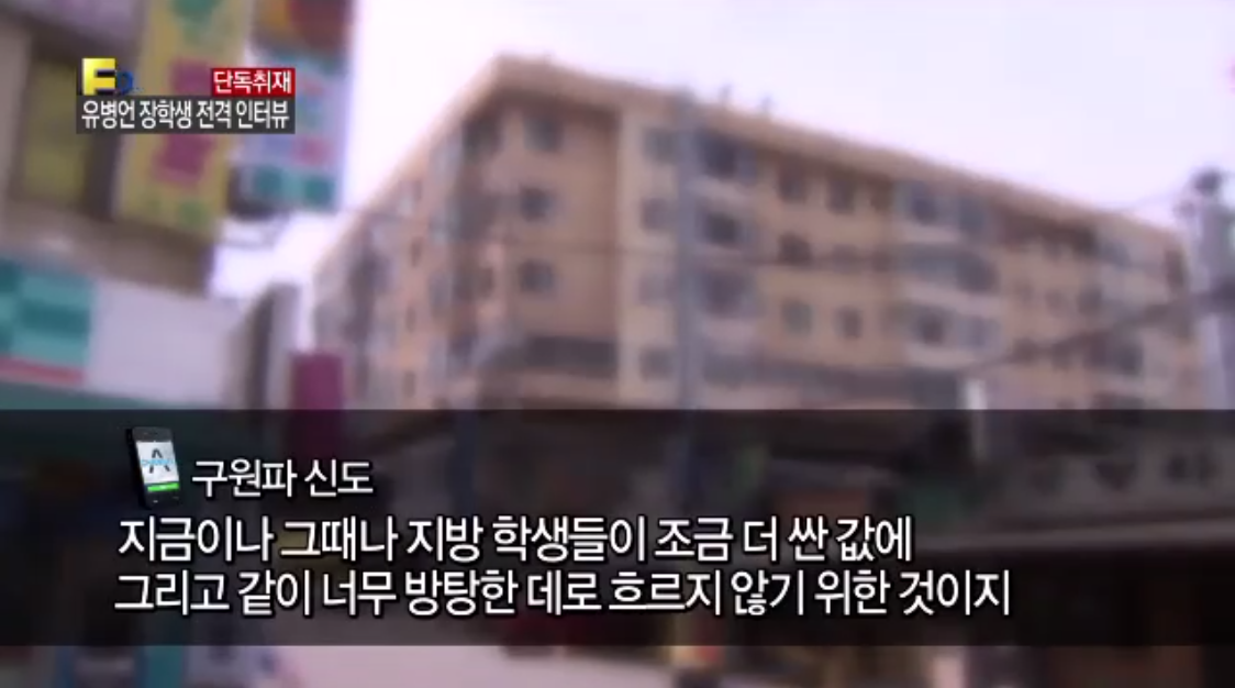 【기자】 제공한 건물은 맞고요, 거기에서 숙식을 해결하는 정도였지 장학금을 받은 것은 아니다 이런 부분들에 대해서 아니라고 한 것입니다.