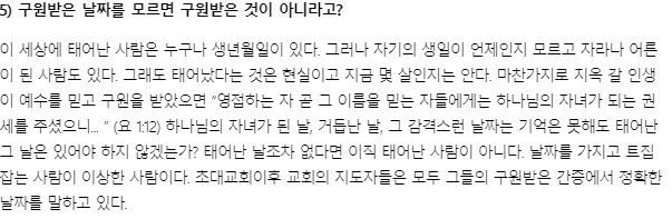 구원 날짜와 시각을 다그친다. 구원받은 날짜, 장소, 성구가 있어야 한다. 구원받은 날짜를 반드시 알아야 한다.