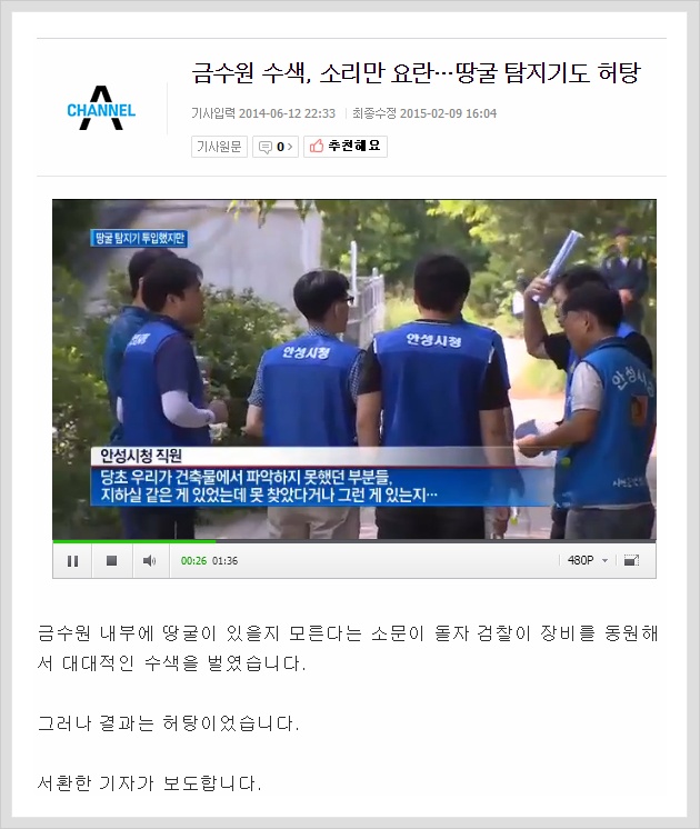 A number of media outlets falsely reported about the facilities in Geumsuwon, saying such things as, “There is an underground bunker facility in Geumsuwon” and, “There are underground tunnels in Geumsuwon - secret facilities that Chairman Yoo Byung-eun can use to escape.” Through discussions with the Press Arbitration Commission and those directly related to the press, the media was corrected or deleted. Examples of false reports are as follows: