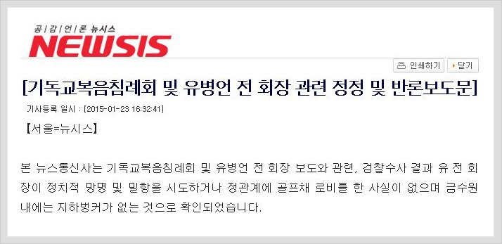 [Correction and counter-argument reports regarding the Evangelical Laymen’s Church and Former President Yoo Byung-eun]