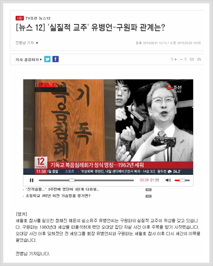 article regarding the Evangelical Baptist Church (the Salvation Group) and the late Former Chairman Yoo Byung-eun