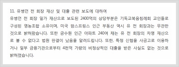 11. Of the articles regarding the fortune and loans of Former Chairman Yoo Byung-eun