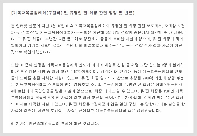 16,000여 건의 오보에 대한 정정 및 반론 보도 중에 해당 부분을 발췌한 글입니다.