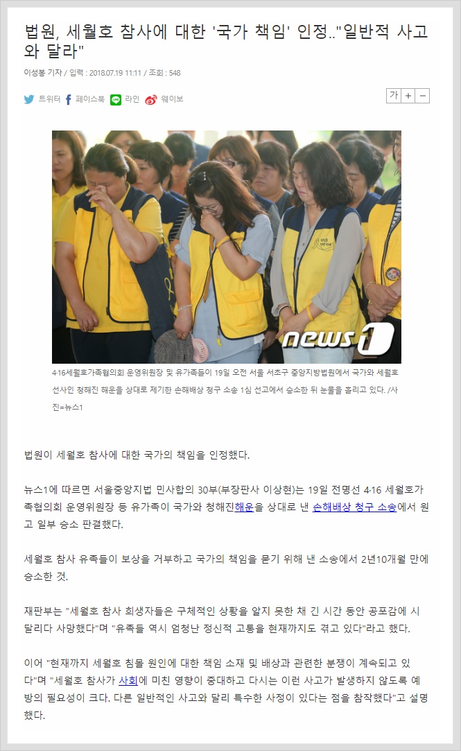 Court acknowledges 'state responsibility' for the Sewol ferry disaster.. "Unlike ordinary accidents"