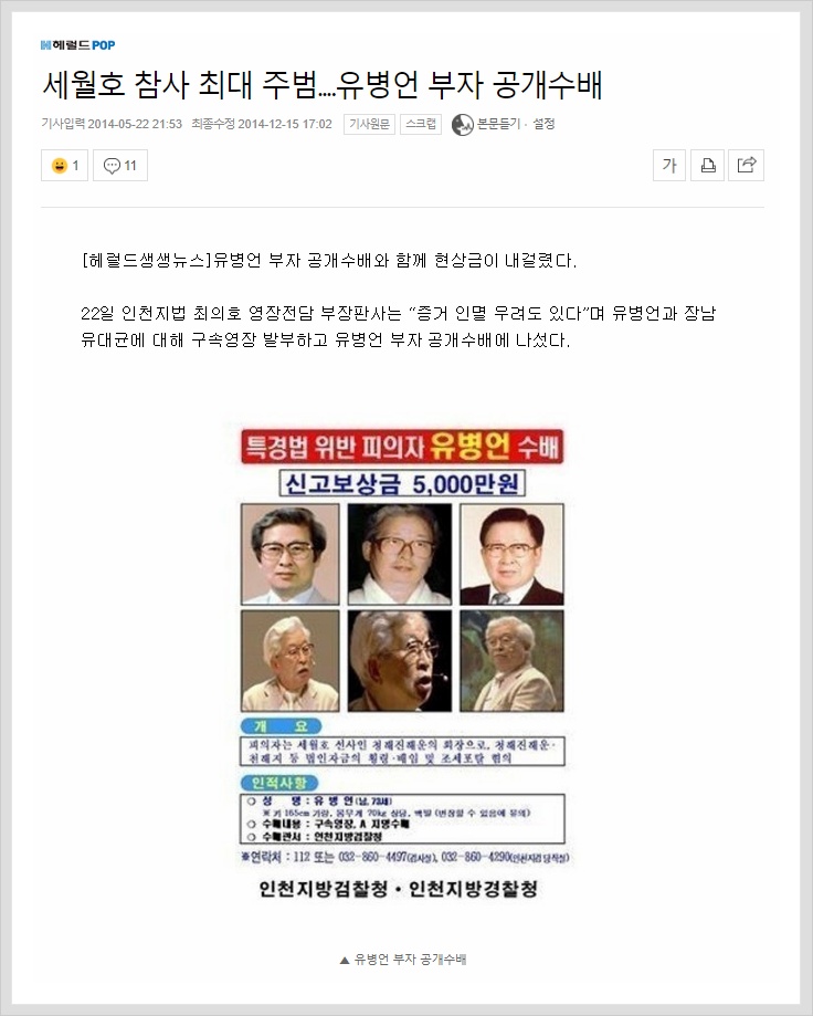 | Former Chairman Yoo Byung-eun is the main culprit of the Sewol ferry disaster. Former Chairman Yoo Byung-eun caused the Sewol ferry disaster. |