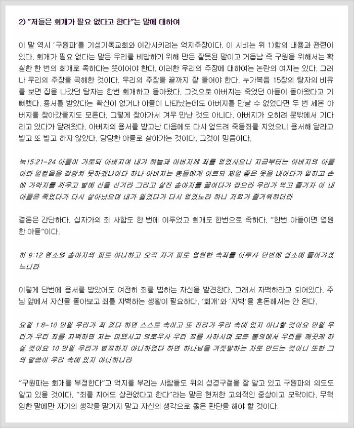 [Evangelical Baptist Church counter-argument] Read the article <Church and Faith>