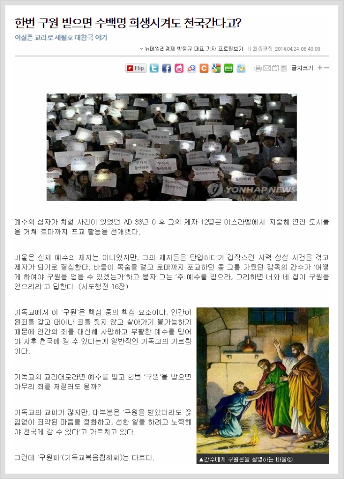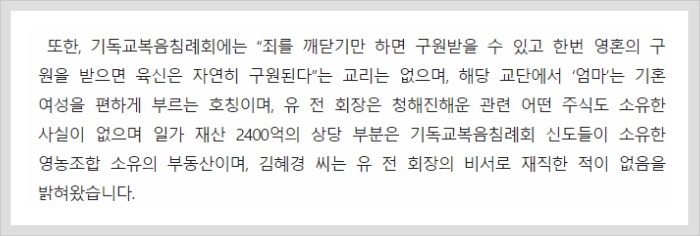 Correction and rebuttal reports related to the Evangelical Baptist Church (Salvation Group) and former President Yoo Byung-eun