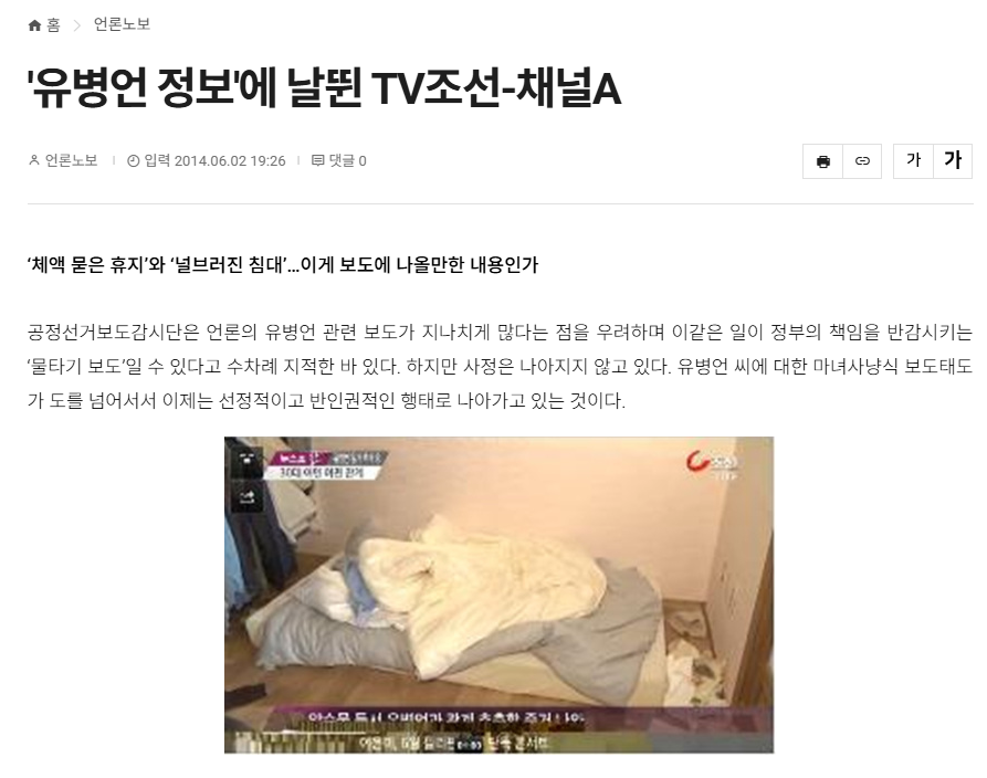 16,000여 건의 오보에 대한 정정 및 반론 보도 중에 해당 부분을 발췌한 글입니다.