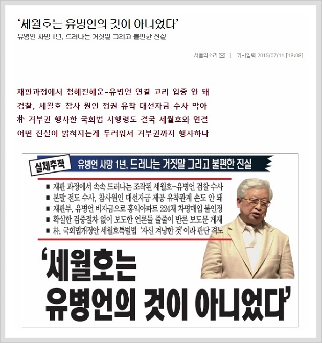 ‘Sewol ferry did not belong to Yoo Byung-eun’ 1 year since the death of Yoo Byung-eun, and the uncomfortable truth
